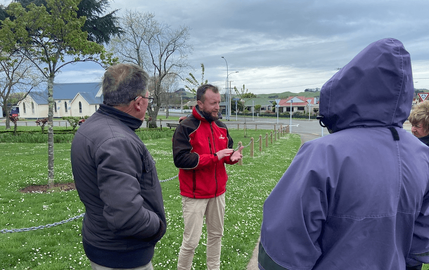 It’s a cold and blustery day in central Hawke’s Bay, but Labour minister and Wairarapa MP Kieran McAnulty has still attracted a small group of prospective voters. He didn’t expect anyone to turn up to this street corner meeting, part of his campaign bid for reelection, positioned in the open air near a roundabout in the rural town of Waipukurau. He describes his drive several hours north from Masterton through torrential rain and gales and thanks the crowd for braving the weather. Though he’s visibly shivering, decked out in a jumper and a Labour-branded coat, McAnulty seems genuinely thrilled to have people to talk to.