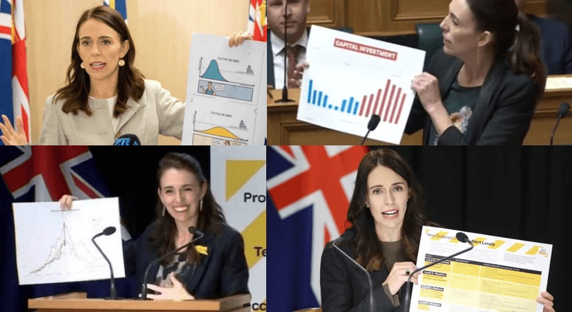 Jacinda Ardern loves a visual aid in times of lockdown, frequently busting them out during the 1pm press conferences to communicate complex issues in a single glance. A good visual aid does all the heavy lifting for a politician: it informs us, it enhances their message and it sticks in our memory. A bad visual aid also sticks in our memory, for the wrong reasons. Either way, these politicians have the world in their hands, and we are merely pawns in their visual aid game of life.