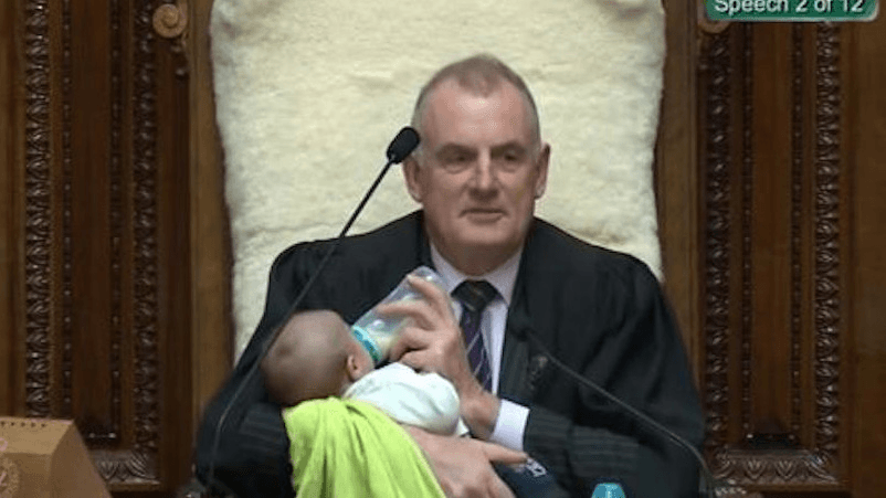A master move, a power play. Speaker of the house Trevor Mallard wins all the Politicians Holding Things awards for tending to Labour MP Tamati Coffey’s six week-old baby during a 2019 parliamentary debate. Mallard made it seem completely normal to bring your kid to work, thereby encouraging tomorrow’s future to enjoy all the dead fish and petty hexagons flying around the workplace. Congratulations to arms everywhere, your work here is done.
