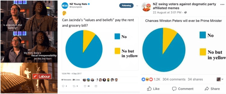 They’re also emotional questions. Things that people are either strongly for or strongly against, and she came out on the right side of both. But when it came to actual policies, Jacinda is still too flakey. Most of the policies, present and future, that Bill put forward, I didn’t like. But at least I know what they are. Unfortunately for Bill, his Young Nats put out two more terrible memes (one ‘borrowed’ from a bipartisan meme account – see below) so he loses just because of that.