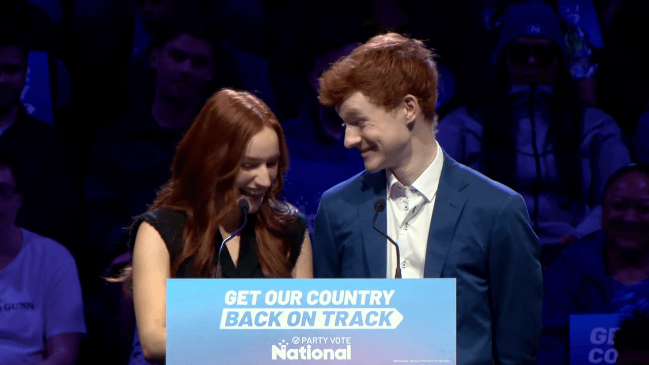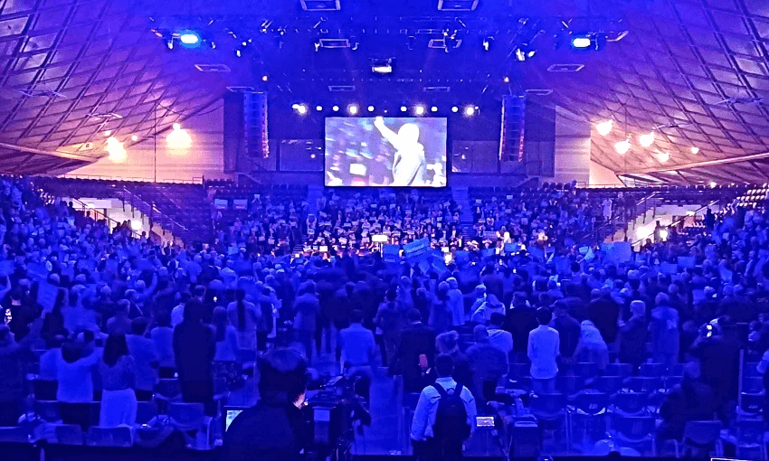 The full retinue of National candidates were invited to the stage under a flurry of lights, their names read aloud in alphabetical order over the PA, some looking amped, others awkward. It was Las Vegas reimagined in the suburbs of Auckland, at times a UFC title-fight buildup, at others a school hockey prizegiving. That was followed by a hype reel which memorably included a terrifying egg timer and crash zooms, like a sinister HBO remake of The Days of Our Lives.