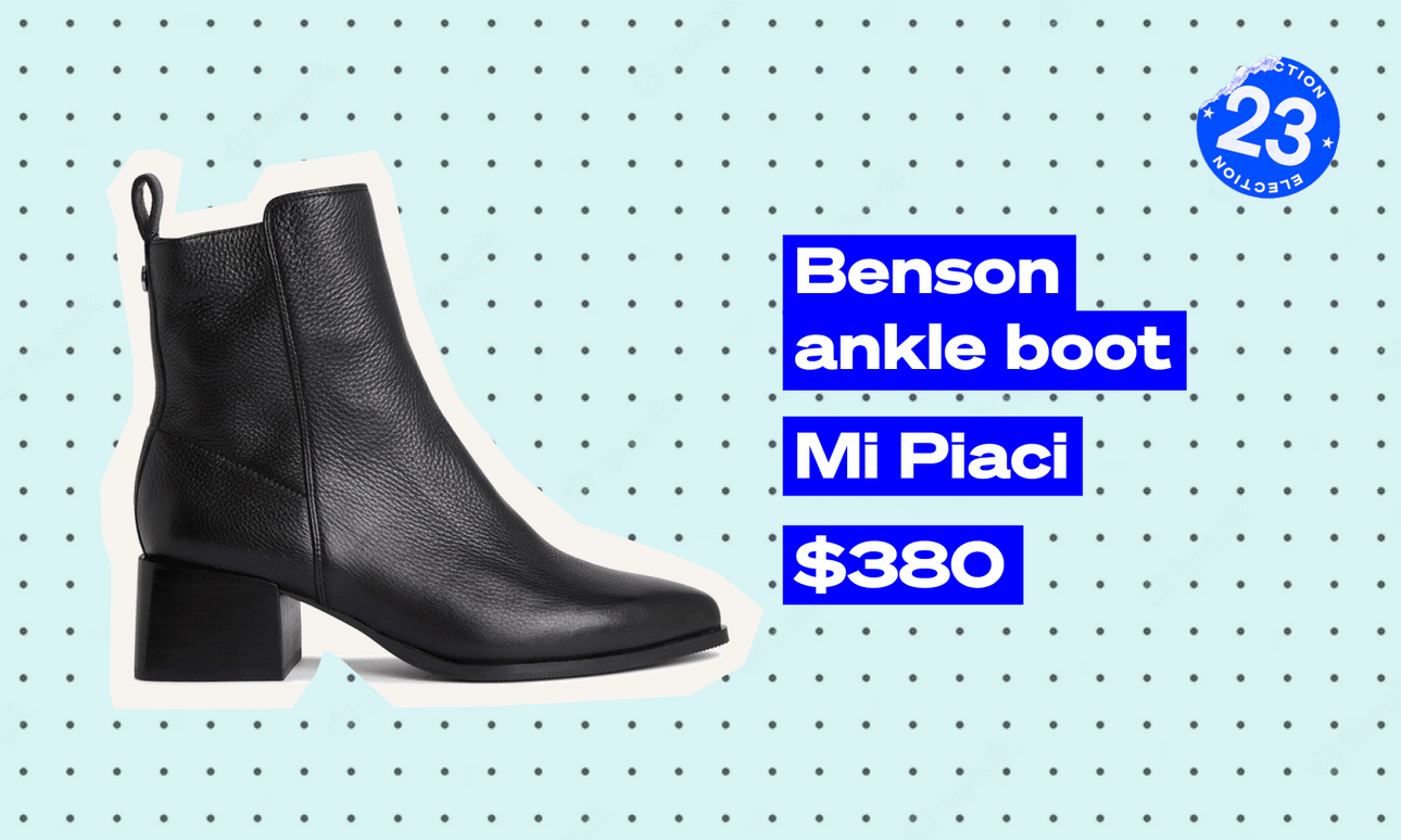 Van Velden must know the old adage about cheap boots being more expensive than expensive boots (because you keep having to replace them). This pair costs $380 which is 4.75 times as much as a definitely not as nice pair made with “synthetic” from Number One Shoes. Since uni, van Velden has bought her winter boots from Mi Piaci – because they last, she says, and maybe also because Mi Piaci is a fun name to say and some people might think you’ve been to Italy recently.