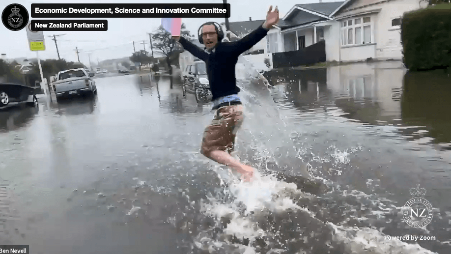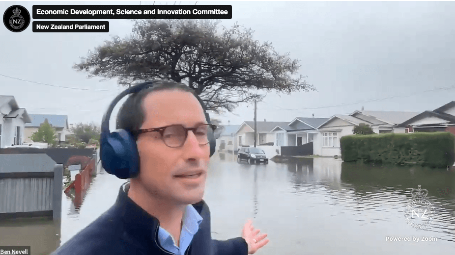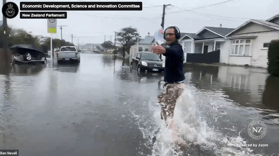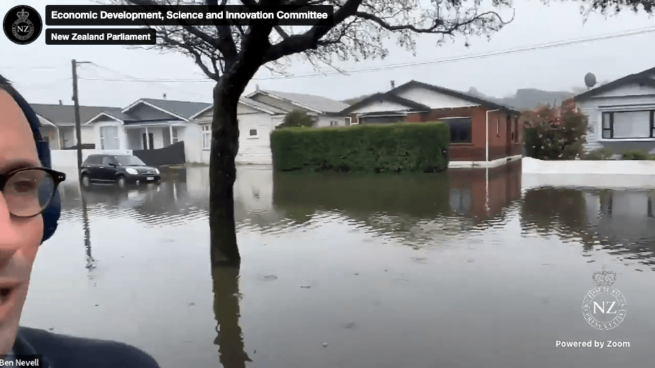 The current government’s in something of a rush to pass this controversial bill – there was just a four-day window for public submissions, which closed on Wednesday night, with oral submissions being heard today and on Monday. One person determined to have their message heard earlier today was Dunedin local Ben Nevell, who Zoomed into the select committee from his flooded local neighbourhood.