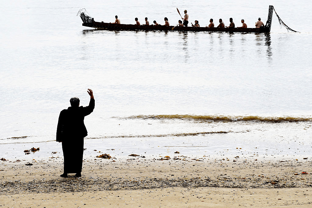 In 1932 the then Governor-General Lord Bledisloe had bought the 1000-acre Waitangi Treaty grounds and British Resident James Busby’s house was built anew as the “Treaty House”. At the huge opening in 1934 the current pattern was set of welcomes and festivities at Te Tii Marae followed by ceremonies and flags up at the Treaty Grounds. About 10,000 people came to the first opening, including King Koroki, which was a sign of hope for those iwi who were actively in decades-old negotiations for the settlement of confiscation by the Crown.