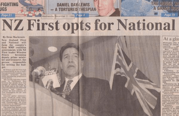 Given that all the NZ First MPs had previous involvements with either National or Labour, there was genuine potential for either of those parties to lead the first MMP government – although Winston’s own preference was always likely to dominate.