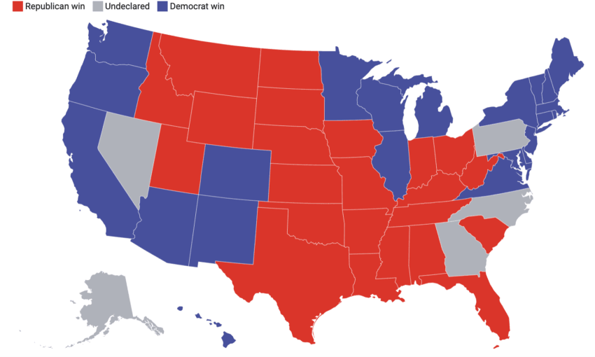 However, the race is far from over – key states including Pennsylvania remain impossible to call.