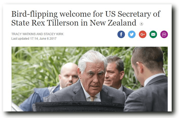 Crowds in Wellington today were seen raising their middle fingers at the motorcade carrying the American secretary of state. We’d like to take the opportunity to say sorry.