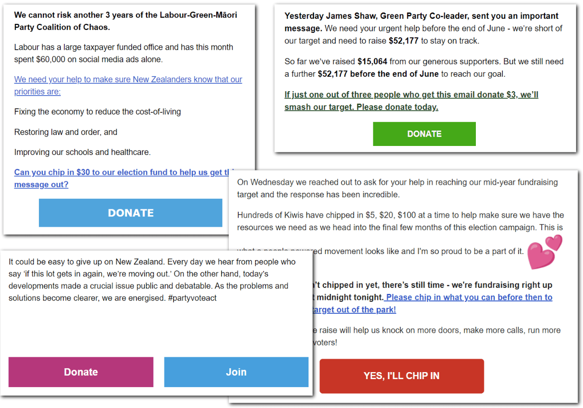 The likes of Labour, the Greens and TPM will stress that they get smaller sums from a panoply of contributors at the grassroots, numbers that are not reflected in the tallies above. But they’re not the only ones. Act, for example, charged supporters $50 a head to attend its recent rally at Sky City in Auckland, and filled the 650-odd-seat theatre. A tiny flyer seeking more contributions was Blu-Tacked to the back of every seat.