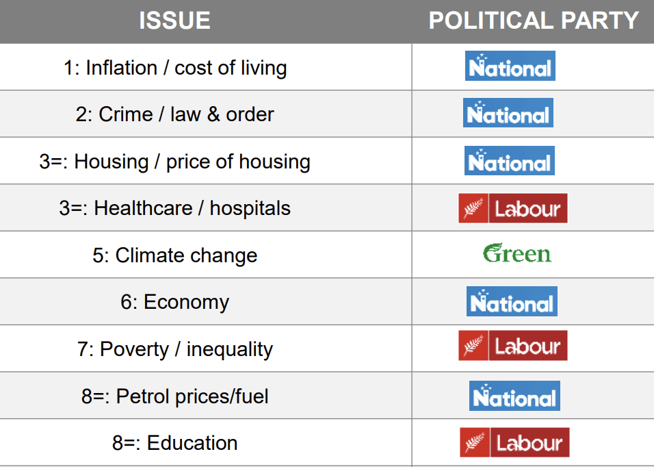 Encouragingly for National, they’re judged the best equipped to deal with the top three issues, having overtaken Labour on housing since the previous survey.