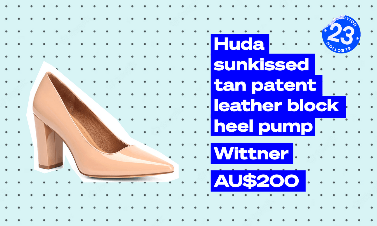 Out of frame, Willis is wearing tan patent leather pumps from Australian brand Wittner. Their Wellington shop has closed, but Aucklanders can visit Commercial Bay for their Aussie foot needs. Willis has opted for a sturdy 9cm heel, which is a reasonable height increase. Being tall is associated with handsomeness, power and making more money, so good on her. I am less sold on the pointed toe. That is not the shape of toes, unless Willis has only four or six rather than 10, in which case I apologise.