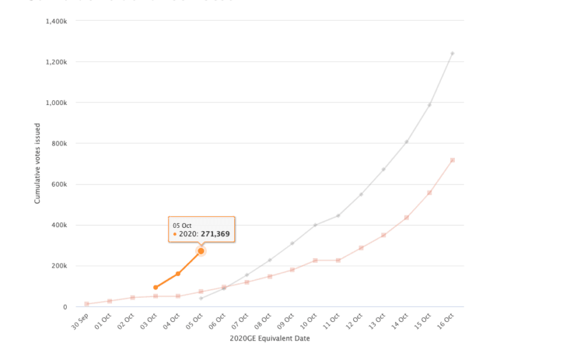 Cumulatively, more than 271,000 Kiwis have now voted ahead of next week’s election – almost twice as many as this time in 2017.