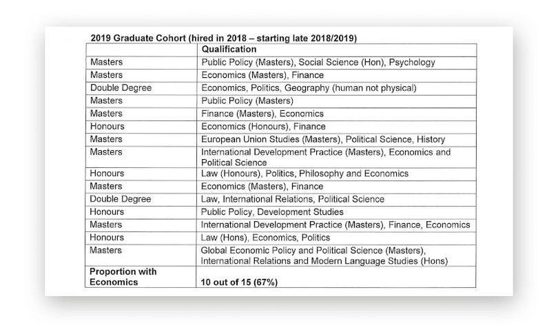 While 10 of 15 graduates recruited in the 2019 graduate recruitment round had some background in economics, only four had at least honours-level training in economics or finance. The recruitment process did little to distinguish candidates with a minor in economics from those with a masters or honours degree. And Treasury’s in-house training programme is simply not up to the task of making up for those deficiencies.