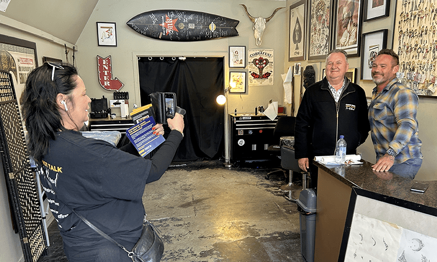 The investments are undeniably popular on the ground in Russell, though. Bay of Islands Ink is a tattoo studio which has been around almost 20 years. Co-owner Pete Regeling is lean and tan from endless surfing, and greets Jones warmly. Regeling is from Aotea originally but has whakapapa to Northland too. He’s an NZ First voter, and says the PGF was a revelation. “It was the first time I felt Northland got a voice,” he says.
