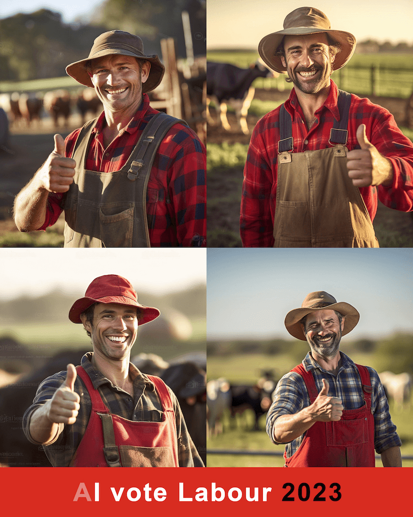Alongside the words, you’ll find some new bespoke political ads for Election 2023, helping our political parties appeal to new market segments with pretend people who may (or may not) look exactly like us.