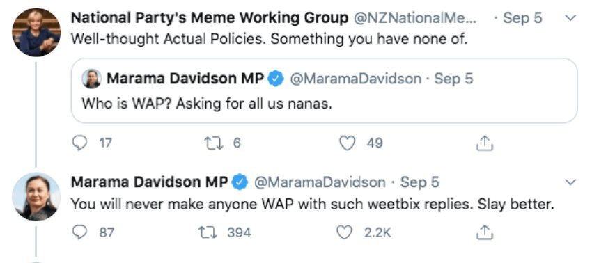 It took six months (read: all of history) but an elected official has finally done something good and funny (on purpose) on social media. It’s not the best wording but using a noun as an adjective? Inspired. Take a bow, Marama Davidson, and don’t feel like you have to do it again. That literally never works.