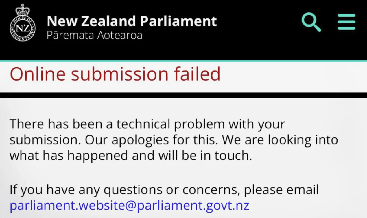 Anyone encountering technical difficulties in online submissions or wishing to check if a submission previously emailed meets the criteria is asked to email treatyprinciples@parliament.govt.nz. Include a screenshot if you hit a technical snag.