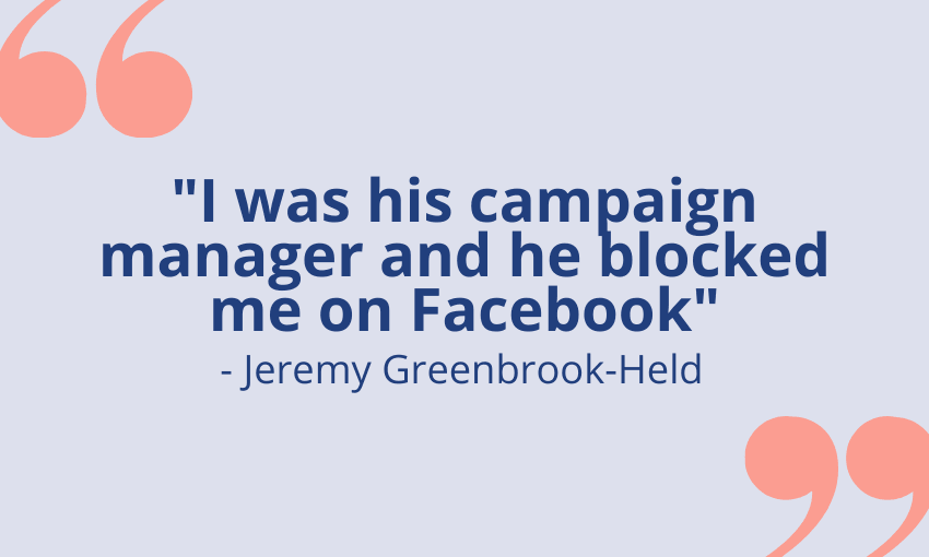 Things got even worse: “Part way through this, he blocked me on Facebook,” says Greenbrook-Held. “I was his campaign manager and he blocked me on Facebook.”