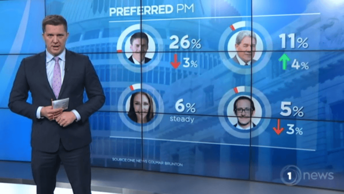 NZ First leader then (Peters): 3% Now (same guy): 11%