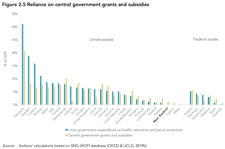 The crown’s dominance of all government spending in Aotearoa is the highest in the OECD, while the amounts granted councils are among the lowest in the world.