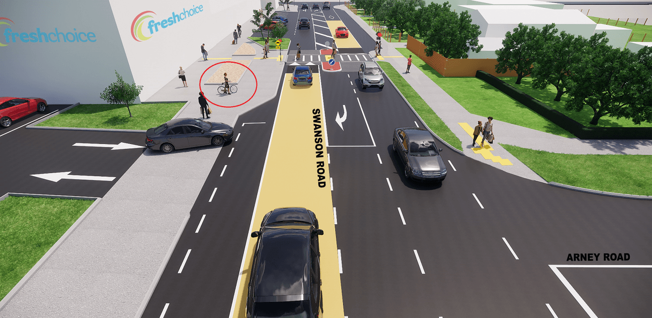 Part of that lack of ambition can be traced back to 2018, when AT disbanded its dedicated cycling team, promising that active transport would be embedded throughout the organisation. If active transport has been embedded, it’s in AT’s deepest, dankest recesses. Since that team’s defenestration, the organisation appears to have forgotten that bikes even exist, with many project designs working to further entrench driving as the default. In Hobsonville, it carried out a road “upgrade” that actually removed a cycle lane. In St Heliers, it killed plans to improve cycle infrastructure in order to preserve on-road parking. Auto-dependency is built into its public transport hubs, with new bus interchanges in Drury and Silverdale being developed as park and rides. Last week, it released a concept for a road “improvement” in Ranui which actually features a stranded cyclist staring into the abyss.