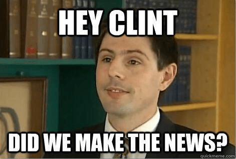 “Hey Clint”, Gareth Hughes asked me as the camera rolled, “are we pleased?”