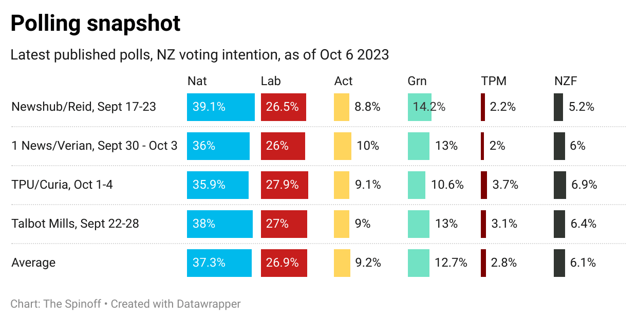 A poll last month put Labour’s Soraya Peke-Mason five points ahead of Te Pāti Māori co-leader Debbie Ngarewa-Packer in Te Tai Hauāuru. Ngarewa-Packer’s greater campaign profile may overcome that, but we’ll mark it down in accordance with the poll.