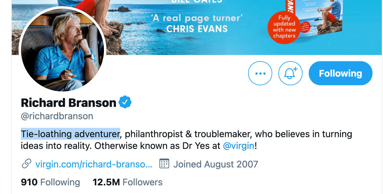 Branson’s Twitter bio now reads “Tie-loathing adventurer”.