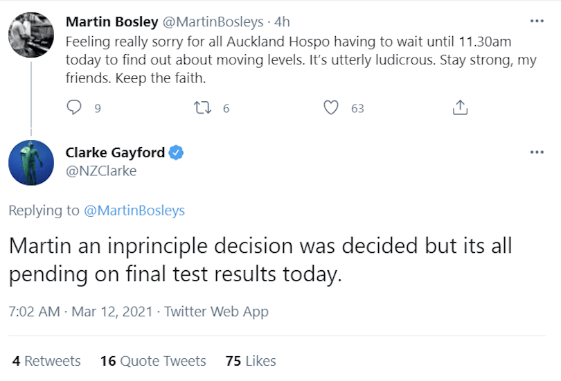 Judith Collins isn’t happy about it either. The National Party leader tweeted to say it’s just not good enough. “We are not allowed to know what the decision is… to fit into the PM’s scheduled press conference,” Collins wrote. “Kiwis deserve more respect,” she later said.
