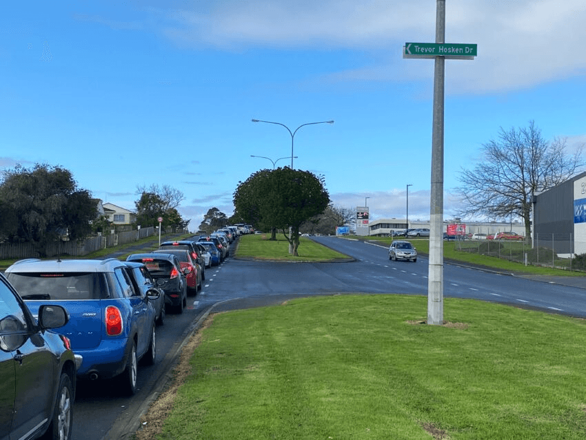 It’s not just the Healthline phone number being swamped with concerned Aucklanders this morning. We’re getting reports of huge queues at testing centres as well. Our South Auckland editor Justin Latif said the testing station in Wiri is experiencing massive demand. He said traffic is stretching about 1 kilometre back from the entrance to the station, and he’s been sitting in the same spot in the queue for 10 minutes.