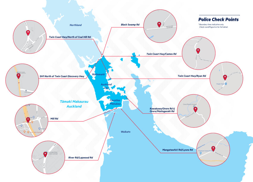 Nine police check points were established on the borders of Auckland.