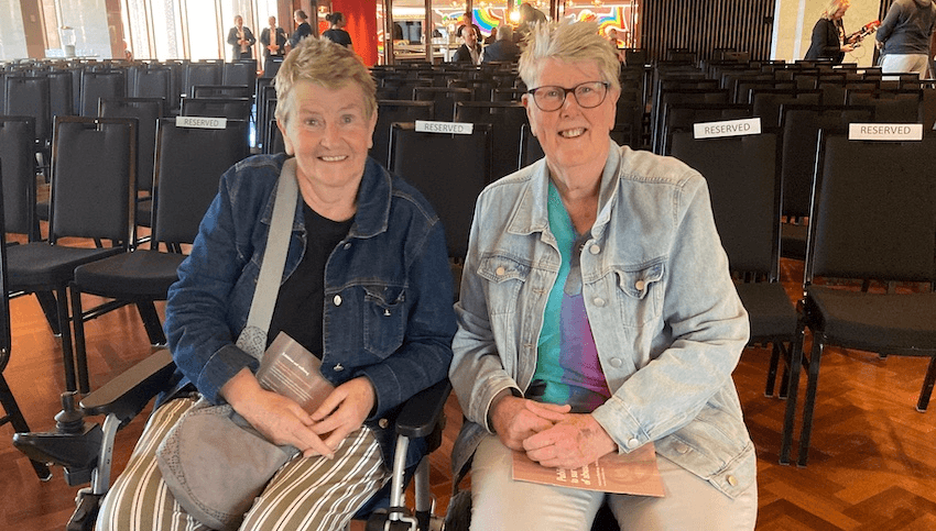 For Joan, the fight is not over – just before I found her again, she was pressing Wigram MP Megan Woods for more information about the redress. But this afternoon, the sun is shining and her and Marg have to head home and mark this milestone in a decades-long battle.