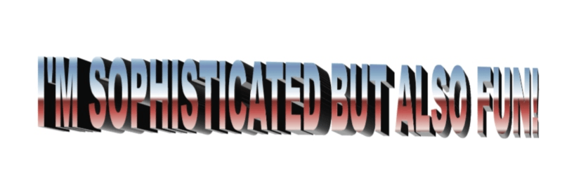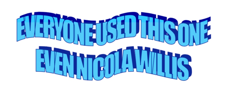Sarah Dowie was 22 when WordArt came out so her admitting to “sometimes” using 15 (this font) is almost certainly in reference to her CV. Look, it does the trick. But still… using this WordArt font is like using a diamond to hammer in a nail. It technically works but no one should ever do it.