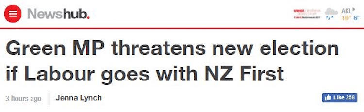 So the Greens’ salvo was calculated, but hardly meant as a clarion for an all-out pile-on. It was not intended as an encouragement for their lowest ranking MP to bound into the public square, “threatening a new election if Labour goes with NZ First”.