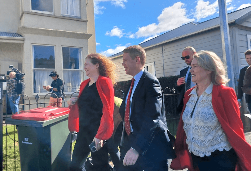 It’s not every day the prime minister visits a love shack, but today was no ordinary day in Dunedin. This morning, Chris Hipkins was on the campaign trail in the southern city, and amid his busy day of announcements, made a quick visit to a student flat on Cumberland Street named “The Love Shack”. Not only did the prime minister call in to the chateau of amour for a quick chat with a group of students, but he brought with him a very special guest: two boxes of donuts.