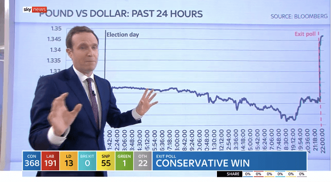 11.48am: The money markets are absolute cock-a-hoop at the prospect of a Conservative Party majority – this is how much the Pound has risen against the US Dollar since the exit poll came out.