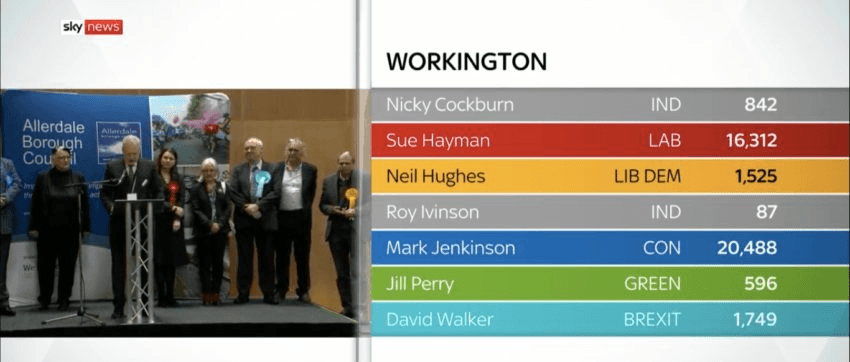 2.24pm: The seat of Workington was the archetypical Conservative party target seat. It’s in the North of England, leans working class, and has historically been safe for Labour – they’ve held it since the 70s. But the results speak for themselves. Sue Hayman, by the way, was in Labour’s shadow cabinet, making her one of the most senior MPs in the party.