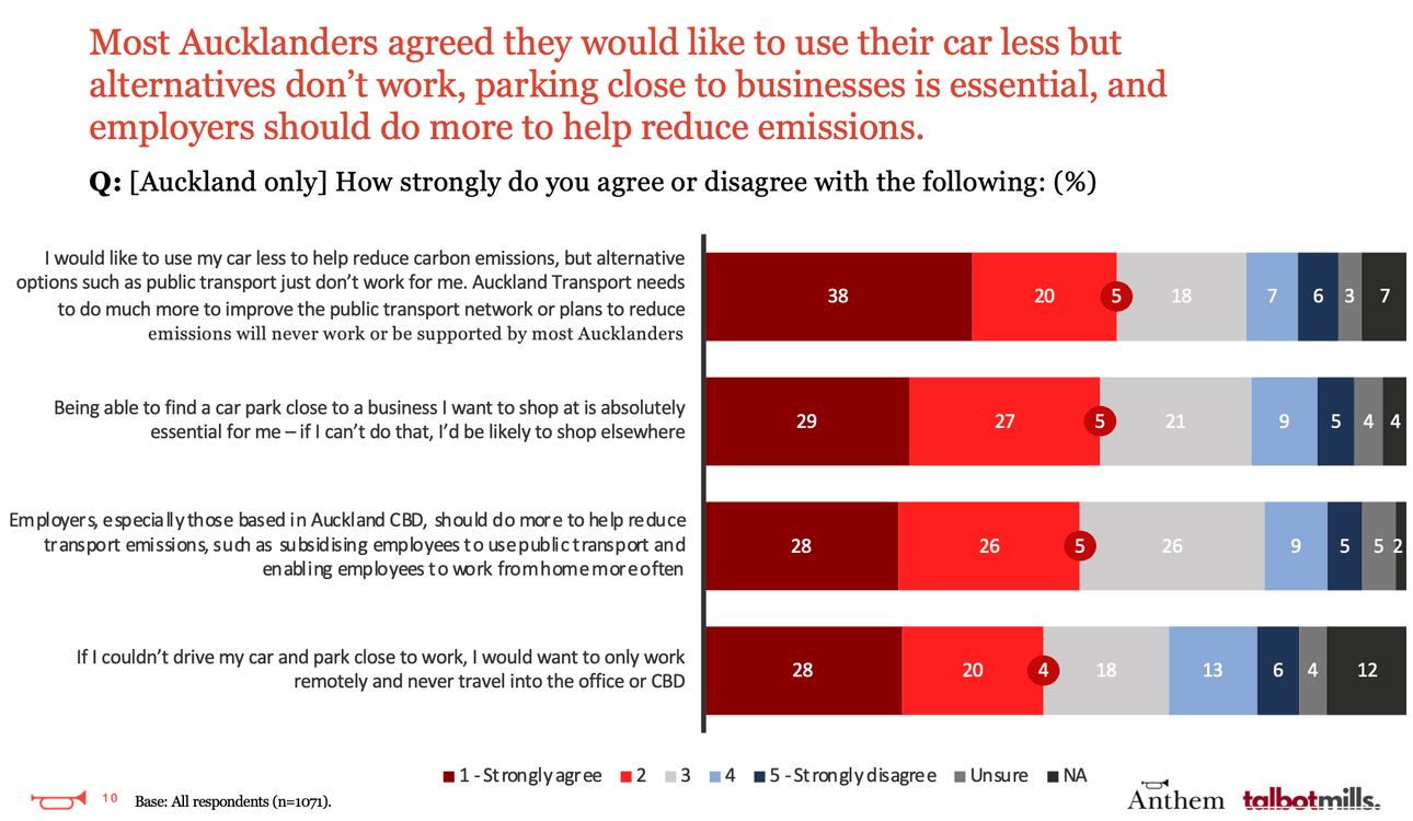 A more nuanced reading of the poll’s other questions finds Aucklanders would like to do more, but feel not enough was being done to improve alternatives for travel such as public transport, or simply did not believe it was possible to carry out their daily lives without using cars and car parks close to shops, schools and work.