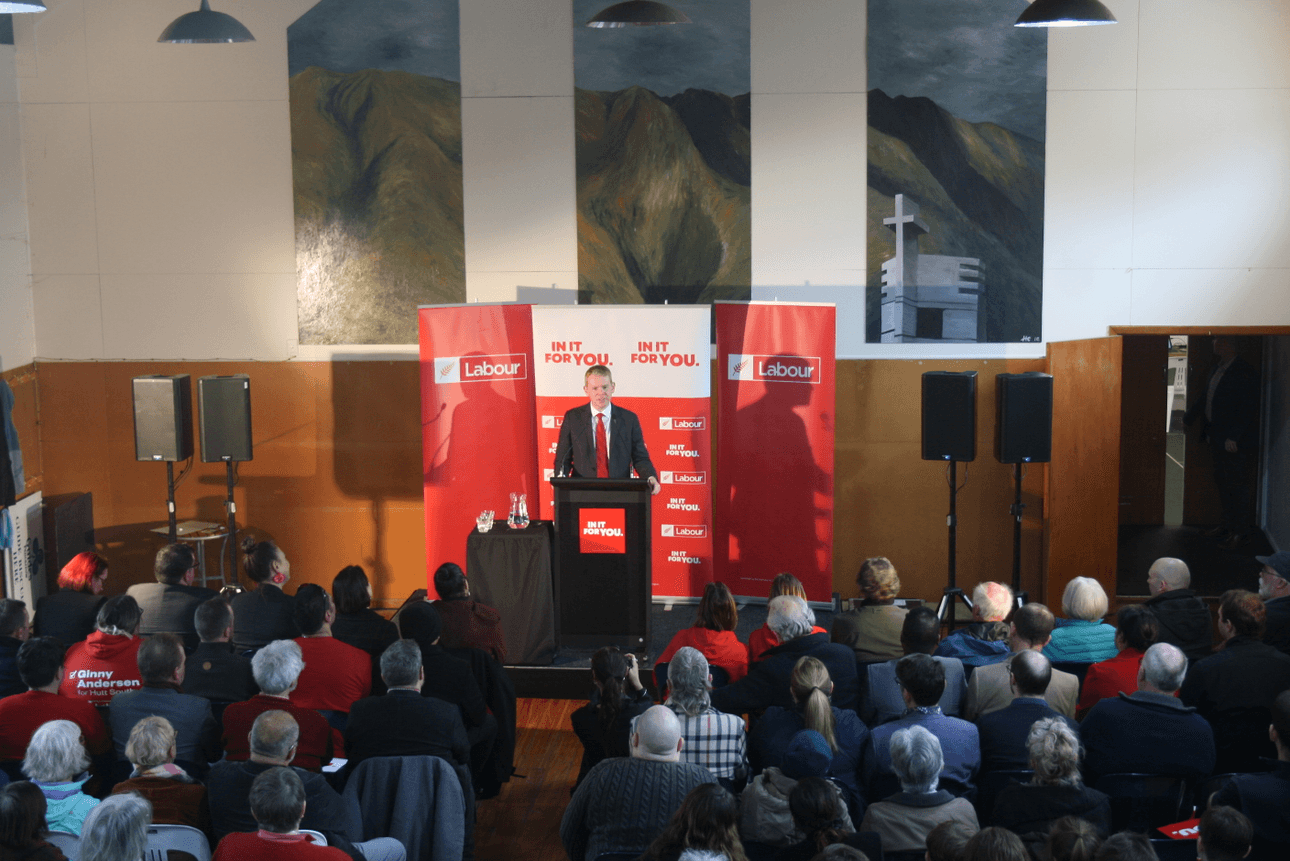 Toby Manhire grabs a seat in Lower Hutt to watch the Labour leader make his biggest pitch yet.