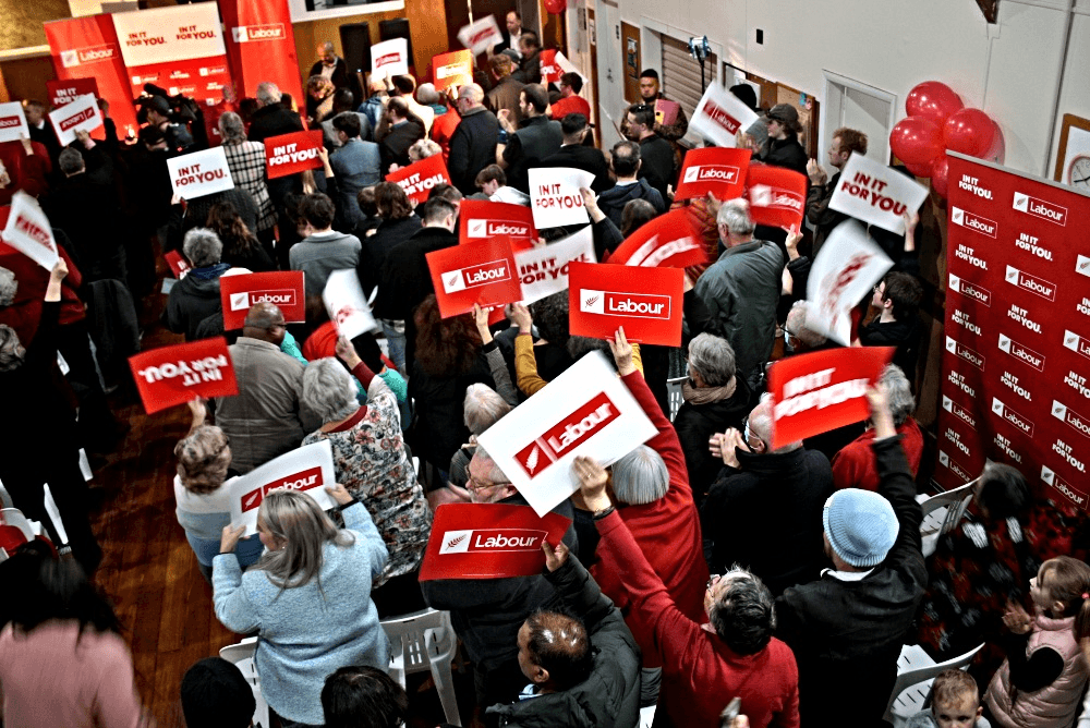 In what was as much a mini-rally as a policy announcement, Hipkins invoked Kirk and Savage, Nash and even Ardern. “I know our team has not had a perfect year,” he said, to a rumble of bruised laughter. There were repeated references to bread and butter, to “coalition of cuts”, and even Ruth Richardson. Mercifully, there was no mention of sausage rolls. Deviating from his speech notes on the subject of Labour’s state house building record, he beamed: “Great things happen when there’s a Hutt boy in charge.” There was even a gentle swipe at the real people’s commissioner for groceries, Sam Uffindell.
