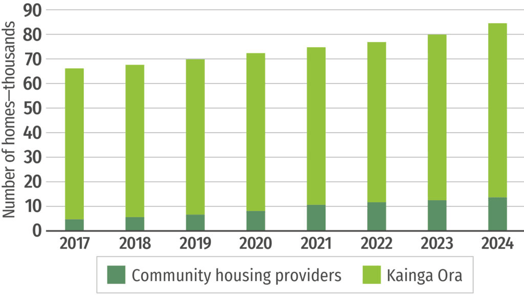 The vast majority of these new homes were funded by the previous Labour government. A Cabinet paper released in February shows the current government does not intend to increase the overall stock of Kāinga Ora homes. National-led governments typically prefer to incentivise community housing providers (CHPs) to provide non-government state houses, rather than investing in Kāinga Ora houses. CHP housing has grown, with 1,677 new houses since June 2023, but still makes up only 16% of overall social housing.