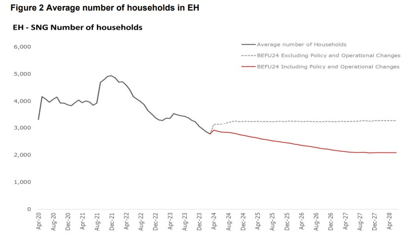Modelling provided to ministers by the Ministry of Social Development ahead of the changes estimated that 1,000 fewer households would be able to access emergency housing, which would save the government $350 million over five years. This net saving was reapportioned by the government for Budget 2024.
