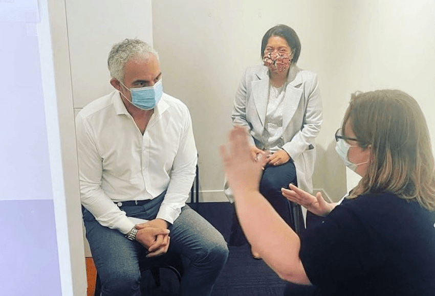 The Labour minister got his second dose without a shirt on. Mad Chapman asked him to justify himself.