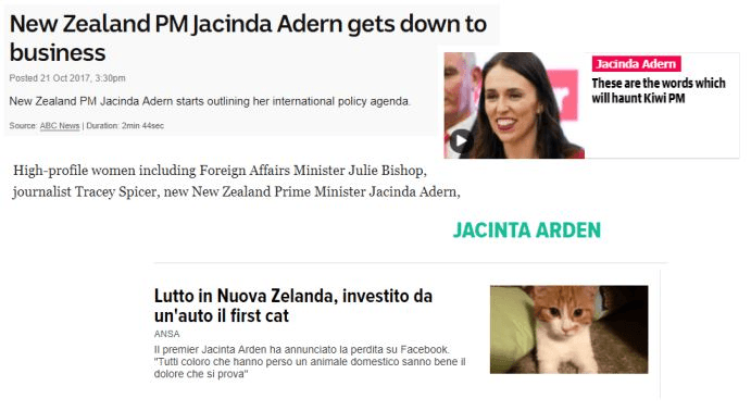 Also making a big impact have been Jacinda Arden and Jacinda Adern.
