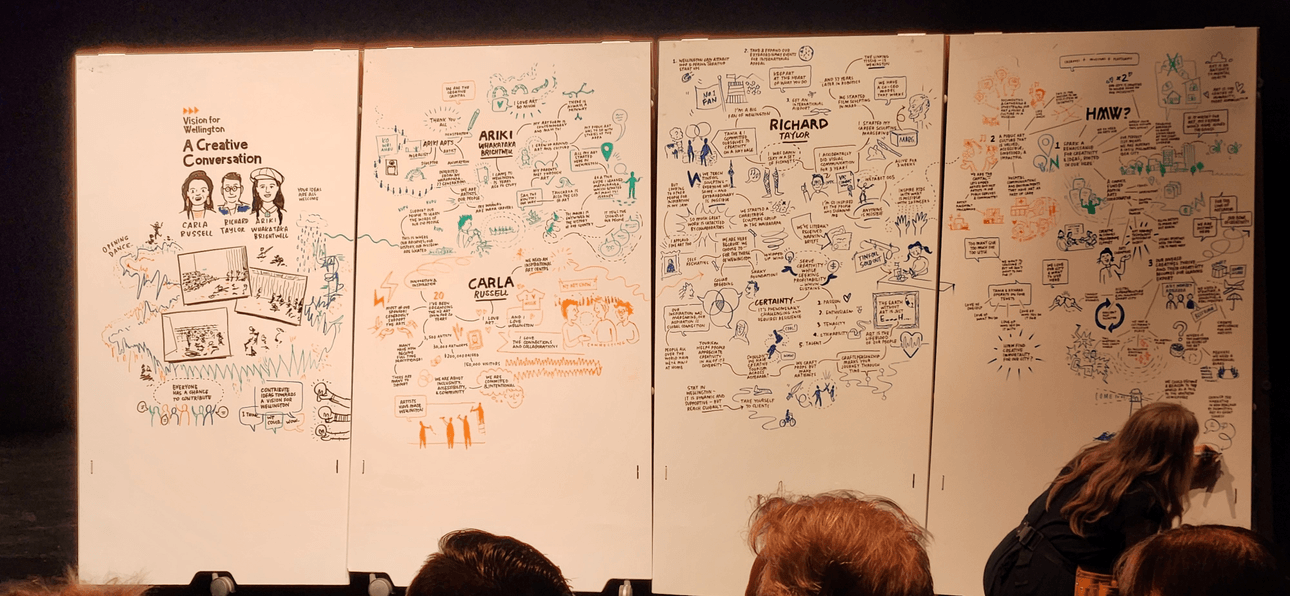 One person raved about their recent visit to the British Museum and suggested, “What we really need is a museum that incorporates our music and our art” (a fascinating idea for the city Te Papa is in). Carolyn Henwood, a founding member of Circa Theatre, wanted to create a unified arts industry group in the vein of Beef + Lamb New Zealand or New Zealand Winegrowers. Richard Taylor suggested forming a commercial board to be “the Fonterra or Zespri of the arts world”.