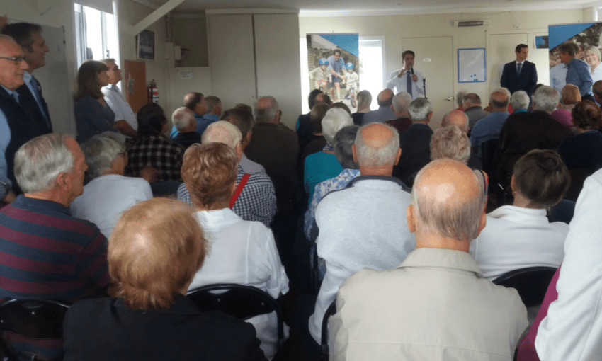 So if the people in his meetings could be given the amorphous moniker of middle New Zealand, where are they at? It was hard to escape the feeling that the crowd wanted more red meat. There were vigorous nods, murmurs and even cheers when he tipped his hat to getting tough, to cracking down – the boot up the bum approach advocated by National’s right wing.