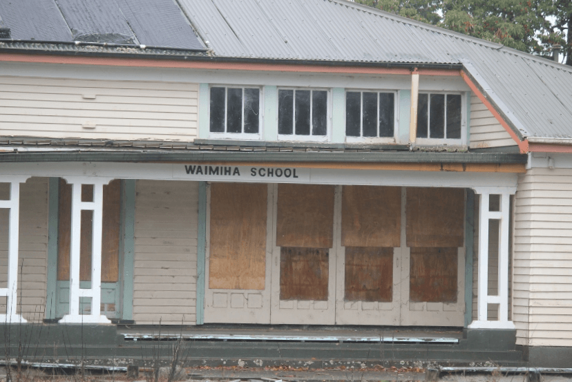 There are few sights more depressing than a boarded up school. The lawn out front of Waimiha School hasn’t grown over, because horses sometimes graze on it. But the planks of wood over the windows tell a story of decline of a community.
