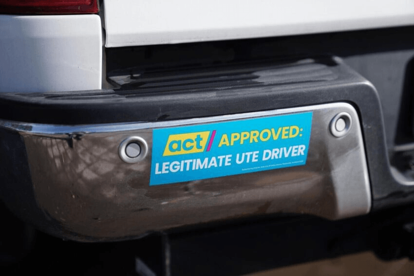 Sometimes bumper sticker politics mean actual bumper stickers, and here Act is jumping on the doublecabwagon with a jab at the so-called “ute tax” and the prime minister’s suggestion that some utes are more “legitimate” than others.