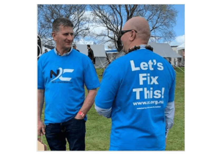 For a party committed to keeping things as they are, there has been a lot of change at the New Conservatives. And that is reflected in the promotional picture for the New Con tee, which is modelled here by Leighton Baker and Elliot Ikilei, both of who used to be the party leader before being unseated for reasons unknown.