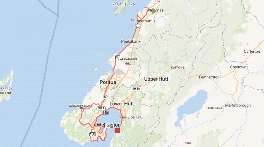 From Waikanae to Eastbourne, via Waikanae Beach, Paraparaumu Beach, Raumati Beach, Paekakariki, Pukerua Bay, Plimmerton, Paremata, Porirua, Johnsonville, Mākara Beach, Aro Valley, Owhiro Bay, Island Bay, Houghton Bay, Lyall Bay, Moa Point, Breaker Bay, Seatoun, Karaka Bay, Scorching Bay, Massey Memorial, Shelly Bay, Kilbirnie, Evans Bay, Hataitai Beach, Kio Bay, Weka Bay, Balaena Bay, Little Karaka Bay, Oriental Parade, Jervois Quay, the Bus Station, Kaiwharawhara, Ngauranga, Petone, Petone East, Point Howard, Lowry Bay, York Bay, Mahana Bay, Sunshine Bay and Days Bay.