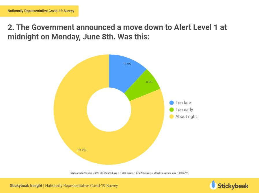 The study went into the field at 7pm Monday June 8 (just after the PM’s announcement of the lifting of level one restrictions and was completed at midday Monday June 15)